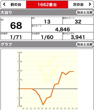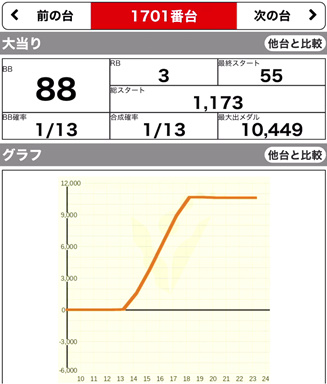 | 11/3 | 月 | 元祖 イナズマスロット (ネオアイム) (戦国乙女) | +10100 +15100 | +1700 +3800 | 8500G 8700G | 106% 113% |