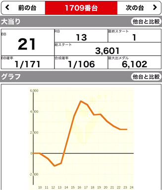 | 9/23 | 火 | 元祖 イナズマスロット (咲) (ハーレムエース) | +17300 +3500 | +4300 – | 9300G 9400G | 116% 112% |