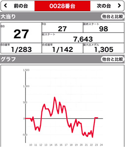 | 28 | ハッピージャグ | 8,200G | +100 | 27:27 1/142 100.1% |