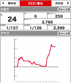 | 221 ⭕ | アイム ジャグ | 4200G | +2200 | 24:6 1/124 17.1% |