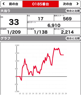 | 185 ⭕ | マイジャグ | 7500G | +1400 | 106.0% | 33:17 1/137.7 |