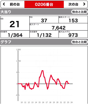 | 206 💮 | マイジャグ | 8200G | +100 | 100.0% | 21:37 1/131.4 |