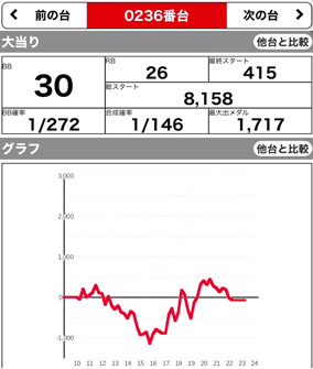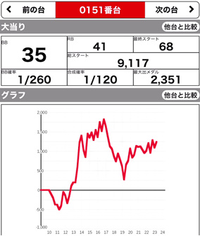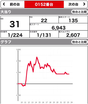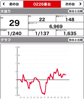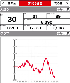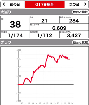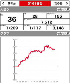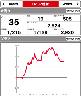 | 209 ⭕ | マイジャグ | 7700G | +1000 | 104.0% | 30:20 1/141.6 |