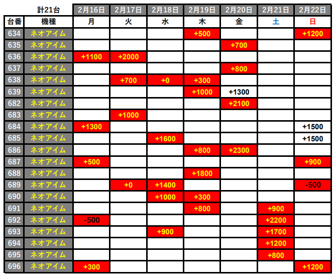 | 2/16 ~2/22 | 月~日 | ≪🍇NEO≫ 🌈7DAYS 🌀ローテーション | 💮 |