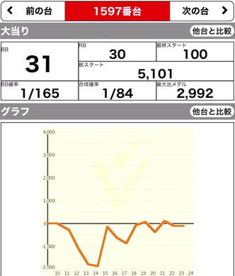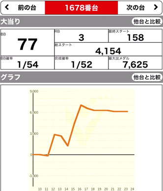平均G数7,900Gと終日しっかり回されており、状況自体は悪くなかった印象です。