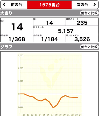 | 9/23 | 火 | 元祖 イナズマスロット (咲) (ハーレムエース) | +17300 +3500 | +4300 – | 9300G 9400G | 116% 112% |