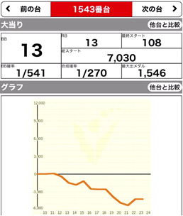 | 11/23 | 日 | 元祖 イナズマスロット (SBJ) | -3900 | -650 | 8100G | 96.5% |
