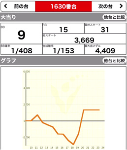 | 9/23 | 火 | 元祖 イナズマスロット (咲) (ハーレムエース) | +17300 +3500 | +4300 – | 9300G 9400G | 116% 112% |