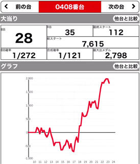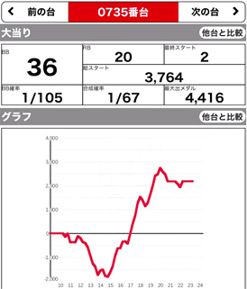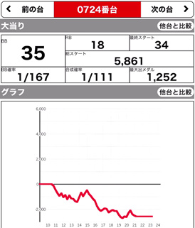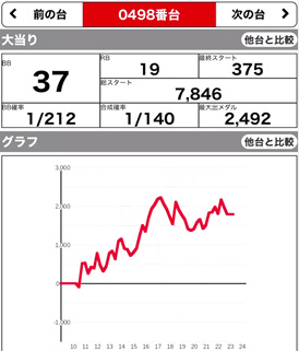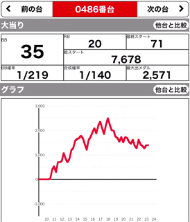 | 486 ⭕ | マイジャグ | 8300G | +1400 | 35:20 1/140 105.4% |