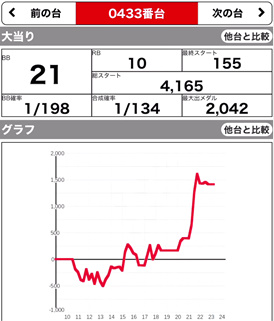 | 433 ⭕ | ネオアイム ジャグ | 4600G | +1400 | 21:10 1/134 110.0% |