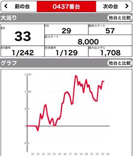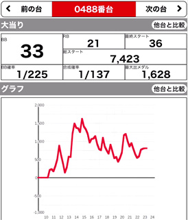 | 488 ⭕ | マイジャグ | 8000G | +800 | 33:21 1/137 103.3% |