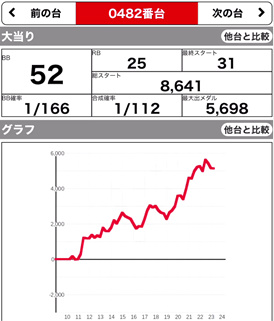 | 482 💮 | マイジャグ | 9600G | +5000 | 52:25 1/112 117.3% |