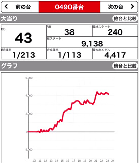 | 490 💮 | マイジャグ | 10000G | +4000 | 43:38 1/113 113.4% |