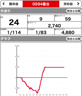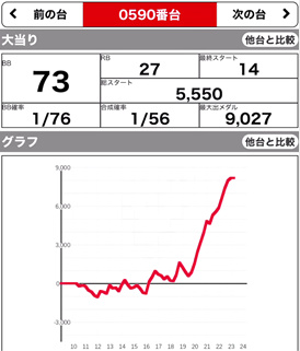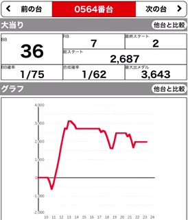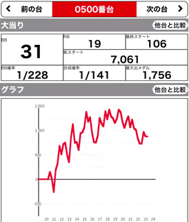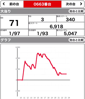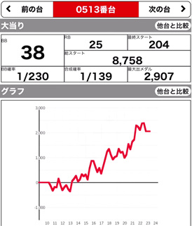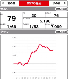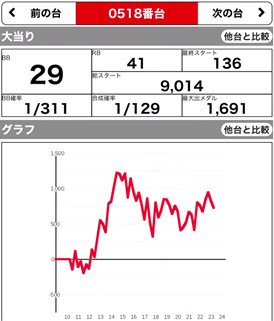 | 510 💮 | マイジャグ | 9500G | +1200 | 32:33 1/135 104.1% |