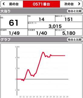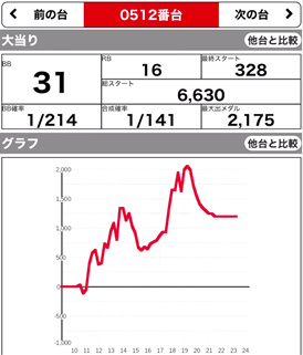 | 512 ⭕ | ネオアイム ジャグ | 7200G | +1200 | 31:16 1/141 105.4% |