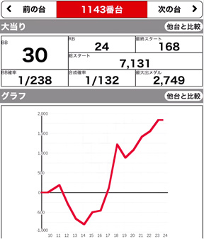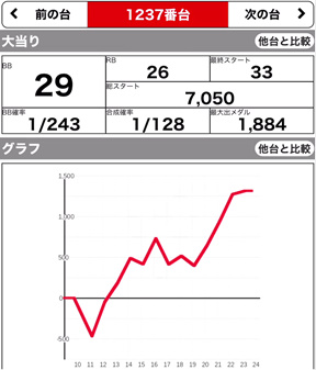 | 1237 💮 | マイジャグ | 7600G | +1300 | 105.6% | 29:26 1/128 |