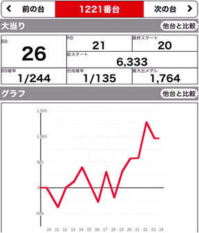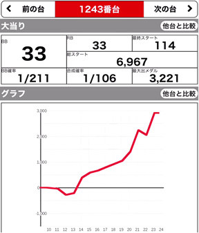 | 1243 💮 | マイジャグ | 7700G | +2900 | 112.3% | 33:33 1/106 |