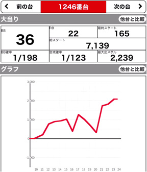 | 1246 💮 | マイジャグ | 7800G | +2100 | 108.6% | 36:22 1/123 |