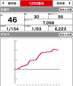 | 1250 💮 | マイジャグ | 7900G | +6000 | 125.0% | 46:30 1/93 |