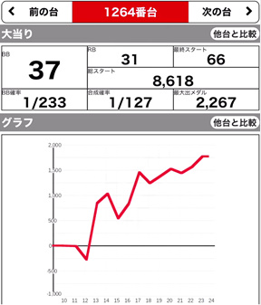 | 1264 💮 | マイジャグ | 9400G | +1800 | 106.1% | 37:31 1/127 |