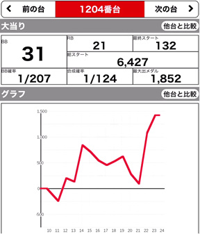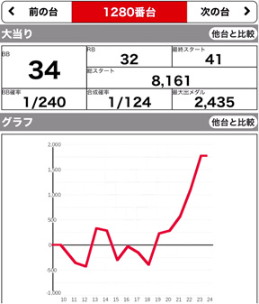 | 1280 💮 | マイジャグ | 8900G | +1800 | 106.5% | 34:32 1/124 |
