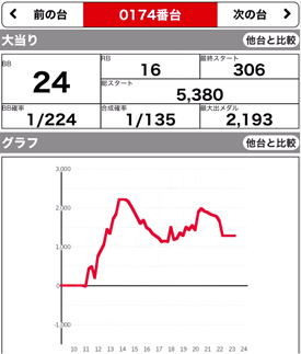 | 174 ⭕ | ファンキー ジャグ | 5800G | +1300 | 107.1% | 24:16 1/135 |