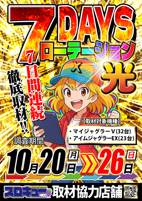 | 26㊐ | ![]() | 🔰初登場&新取材!!🔰 ≪🍇NEO≫ 🌈7DAYS-X-🌈 🌀ローテーション🌟光🌟 ※最終日 7日間連続で毎日取材!! ローテーションで 1台1台しっかりチェック していきます!! ▬ ▬ ▬ ▬ ▬ ▬ -取材対象機種- マイジャグラーⅤ(32台) アイムジャグラーEX(18台) ▬ ▬ ▬ ▬ ▬ ▬ 念のため… 他店舗の結果ですが 参考までに今すぐcheck!! |