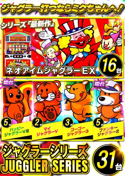 | 遊技料金 | パチンコ[1000円/250玉] [500円/500玉] パチスロ[1000円/50枚] |