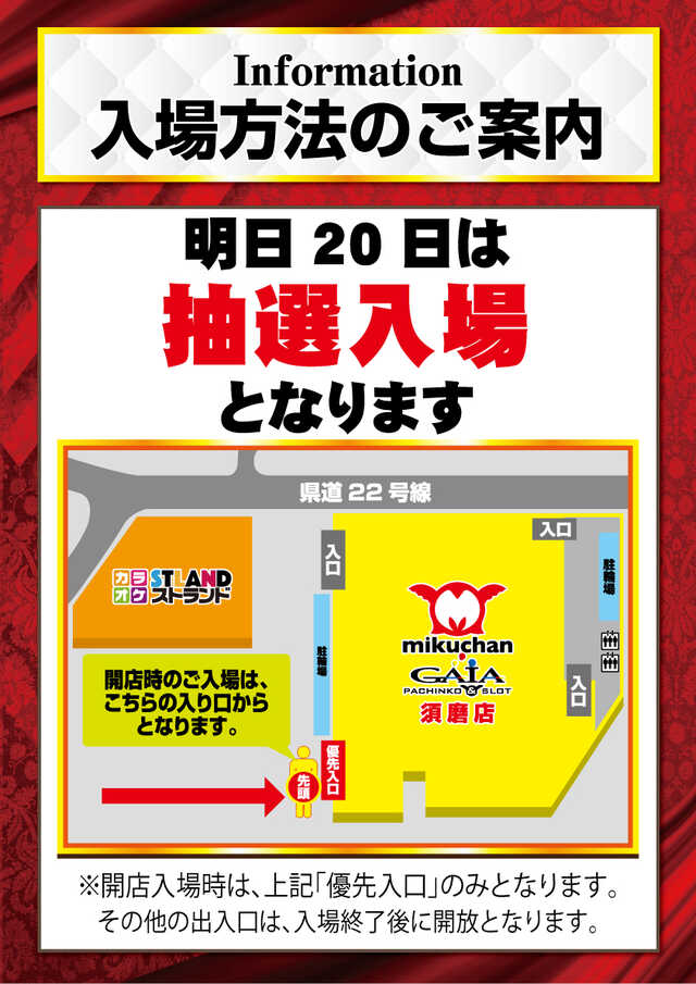 | 20㊏ | 🍈元祖![]() | ▬ ▬ ▬ ▬ ▬ ▬ スロキュー🍈元祖 🌟絶🌟光🌟調🌟 ≪設置機種一例≫ 🤡アイムジャグ(16台) 🤡ハッピージャグ(5台)増台 🤡ファンキージャグ(5台)増台 🤡マイ+ゴージャグ(計5台) 前回12/13の絶光調は… 残念ながら≪▲評価≫ 巻き返しの内容に期待🔥 ⚠️ご注意ください!! 明日12月20日(土)は… 抽選入場に変更です!! ❾:❹❺入場抽選開始!! ▬ ▬ ▬ ▬ ▬ ▬ |