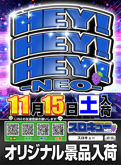 | 15 ㊏ | 🍇NEO![]() 🍡HEY! 🍡HEY! 🍡HEY! ※景品入荷 | 前回(10/18)は… 惜しくも≪中間⭕評価≫ 🔥リベンジに期待!!🔥 他店舗の結果ですが 参考までにコチラもcheck!! ⏰9:30入場抽選開始!!💨 土曜日なのでお早めに!! |