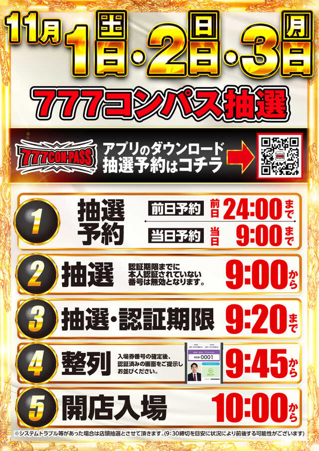 | 3㊊ | ![]() ![]() | 💥2日間連続💥 💥スロキュー取材!!💥 2日目は…!! ⚡イナズマスロット⚡ × × × ⚔️抜群X-GUN⚔️ ▬ ▬ ▬ ▬ ▬ ▬ ≪スロキュー🍈元祖≫ ⚡イナズマスロット⚡ 前回(10/13)のイナズマスロットは… 惜しくも≪中間⭕評価≫ 🔥リベンジに期待!!🔥 ▬ ▬ ▬ ▬ ▬ ▬ ≪スロキュー🍈元祖≫ ⚔️抜群X-GUN⚔️ 前回(10/23)の抜群は… 🌈≪超≫Excellent!!🌈 🏳️🌈⓭連続💮継続中!!🏳️🌈 🌊超~波に乗ってマス!!🏄 ▬ ▬ ▬ ▬ ▬ ▬ 来られる方は 月間統計NEWSを 必ずcheckして下さい!! ⚠️ご注意ください!!⚠️ 11月3日(月・㊗)は… 「777コンパス抽選」です!! 📅前日予約は24時締切!! お間違いのないように!! |
